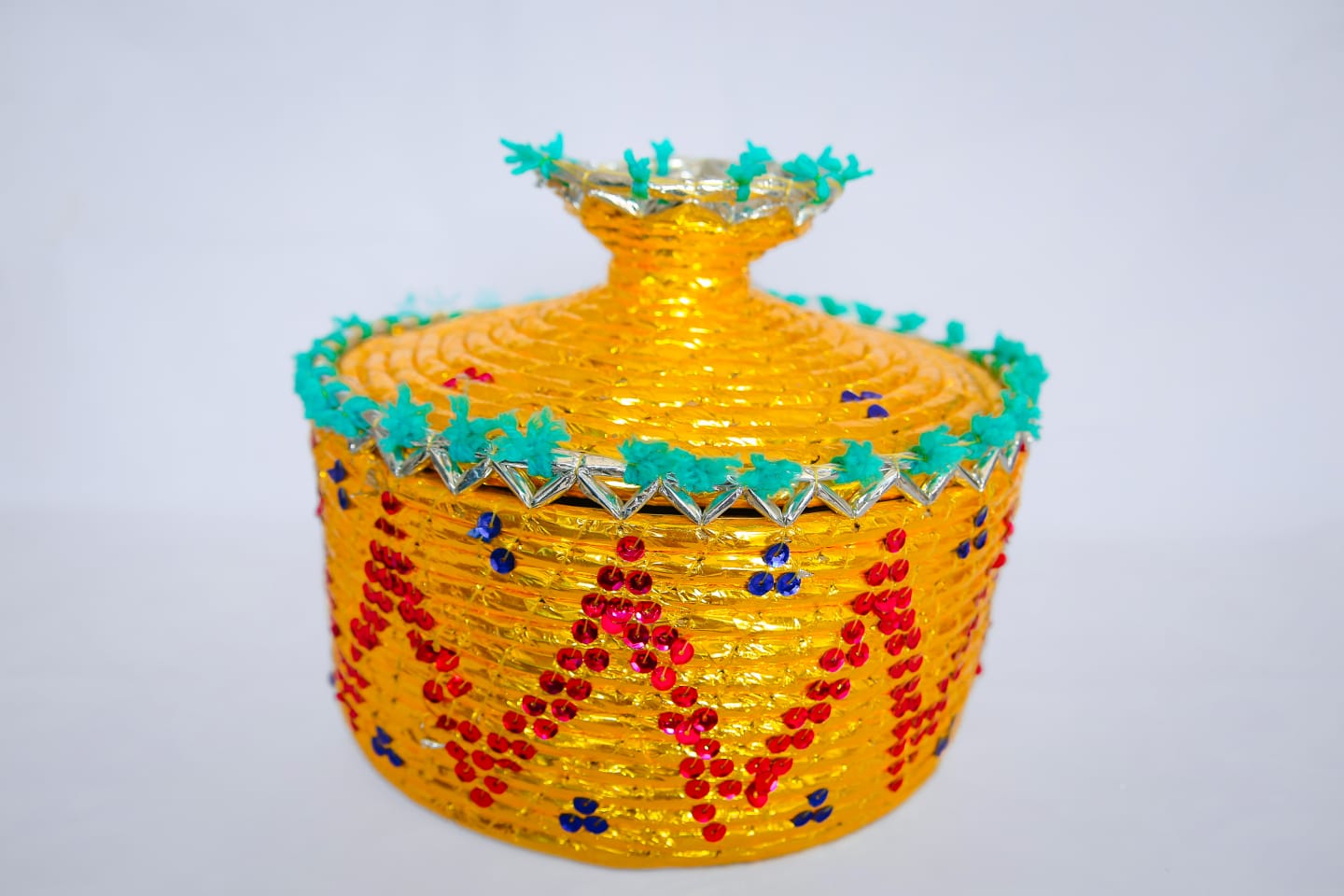 This handmade traditional bread/roti basket is perfect for anyone who loves fresh bread or roti. It is made using traditional techniques and natural, sustainable materials. The basket is designed to keep bread fresh for longer, thanks to its breathable design that allows air to circulate. The lid also keeps out dust and insects, ensuring that your bread stays fresh and clean. The basket is large enough to hold a variety of bread or roti, making it a versatile addition to your kitchen. Whether you are serving bread at a dinner party or storing it for later, this basket is the perfect choice for anyone who appreciates traditional craftsmanship and natural materials.